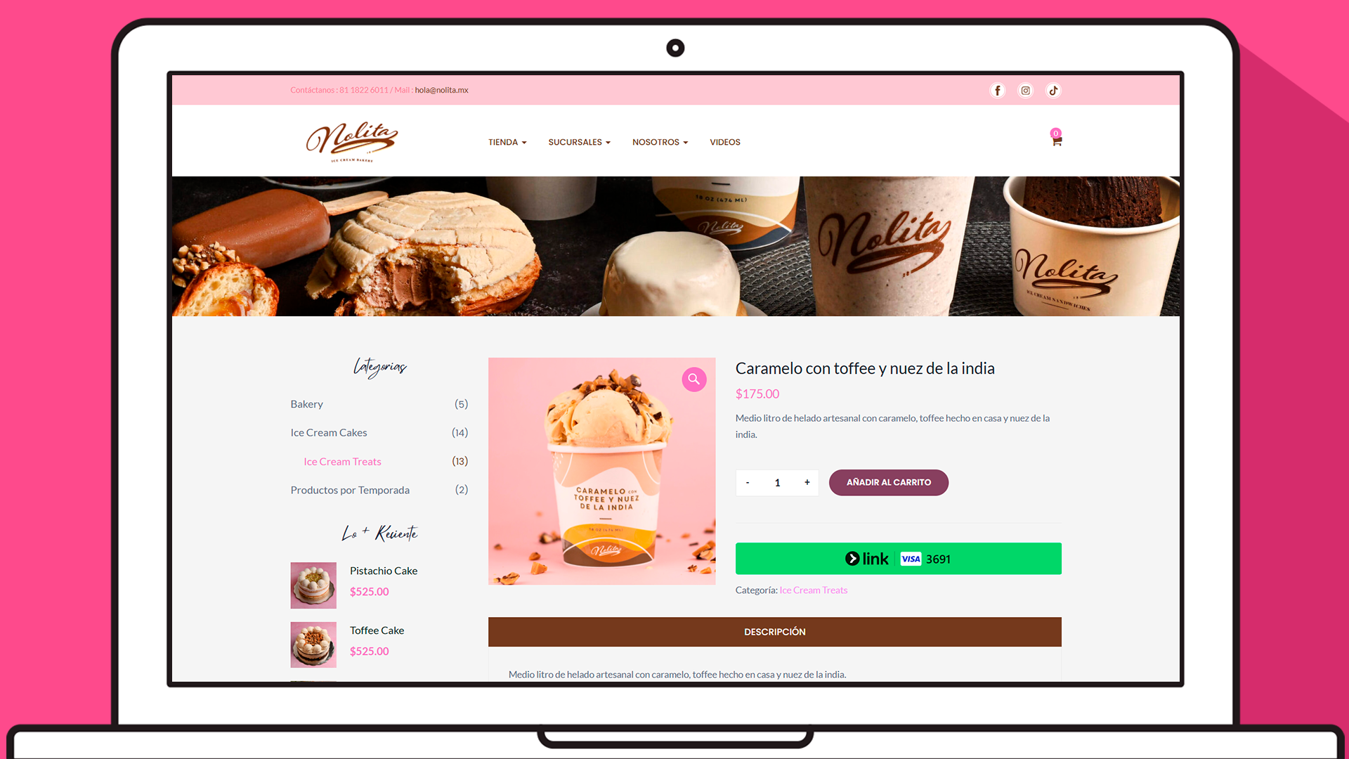 Nolita Ice Cream Bakery es una marca mexicana local de helados y pastelería. Se desarrolló su tienda en línea, incluyendo la programación en WooCommerce, el diseño UX/UI y su implementación completa.